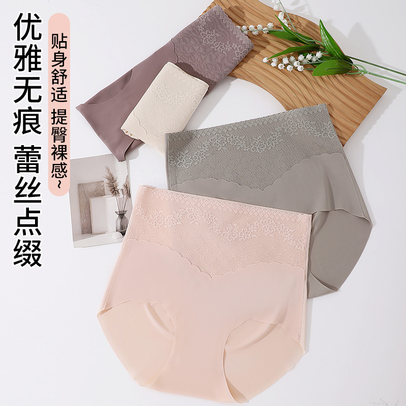 无痕内裤女士蕾丝高腰大妈透气孔底裆提臀女士三角内裤厂家批发