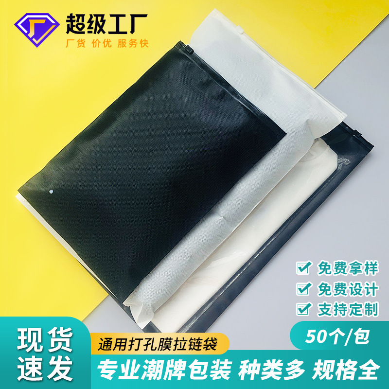 现货批发密封塑料袋大号自封袋打孔膜通用服装包装袋透明pe拉链袋
