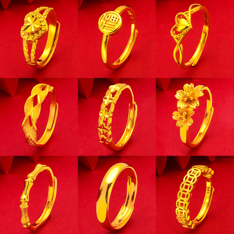 ベトナム沙金指輪女性メッキ24kシミュレーション金ジュエリー結婚用品夜市ソース指輪卸売り
