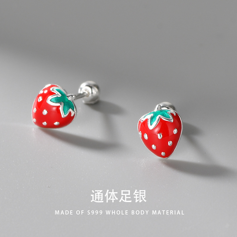 S999銀の赤いイチゴの果物の耳の骨の釘はシンプルで小さくて可愛いです。
