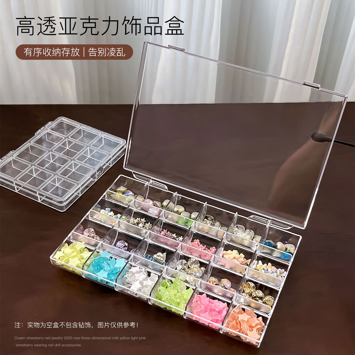 クロスボーダー高透アクリル装飾品ボックスネイルツール24箱防塵防水は便利な収納ケースを展示することができる