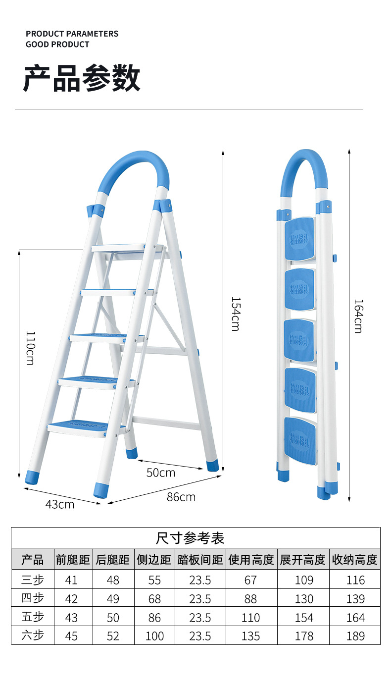 家用加厚碳钢梯子折叠室内多功能加厚折叠梯小型轻便梯子工程梯