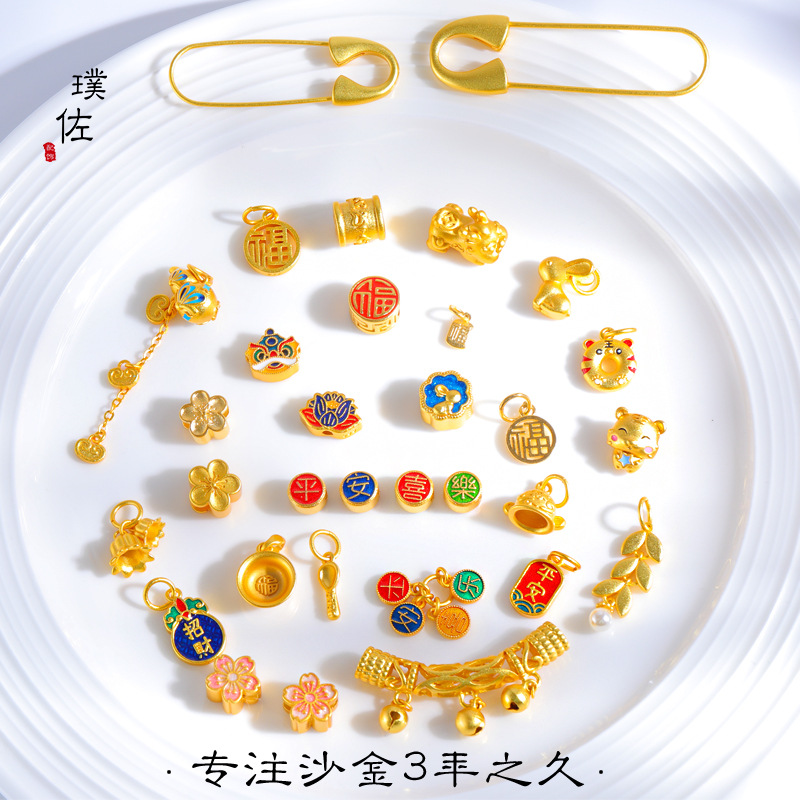 ベトナム古法沙金diy部品蝶ひょうたん元宝提溜ペンダントネックレスイヤリングブレスレット