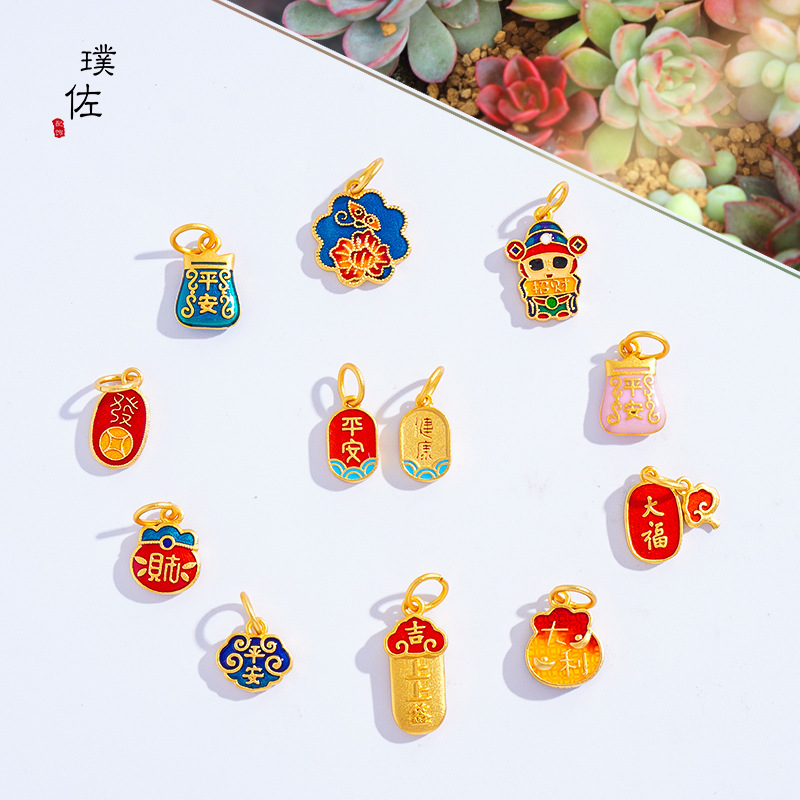 長い間色落ちしませんでした。ベトナム沙金diy部品平安喜楽ペンダントのネックレスにエナメルを飾っています。