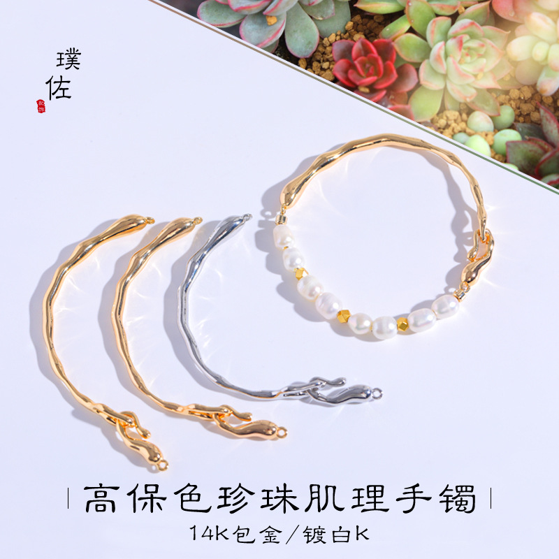 保色14k包金白金筋理真珠ブレスレット半腕輪不規則枝溶岩diy手作りブレスレット部品