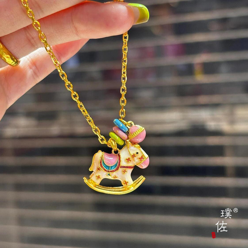金店の同じタイプの沙金diy部品のマカロン色の揺れる木馬のペンダントのカラーの小さいランニングリングのネックレスの鎖