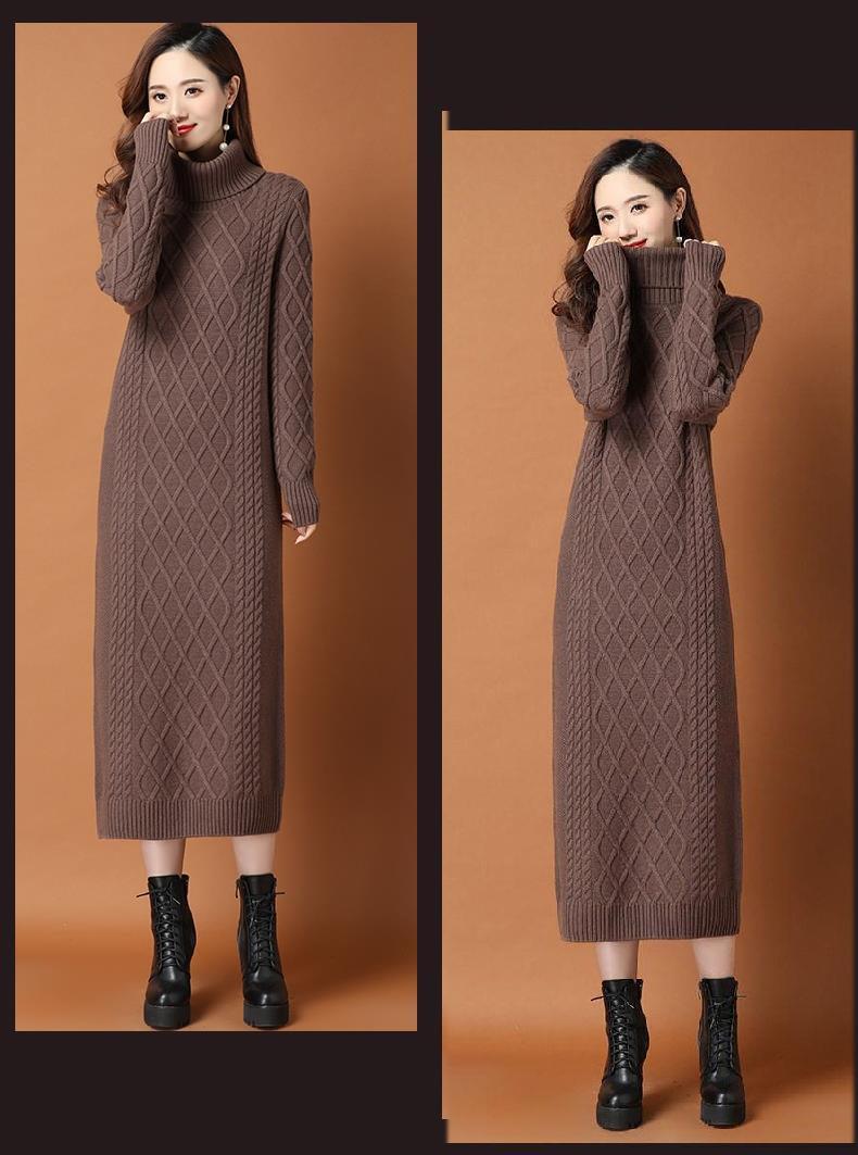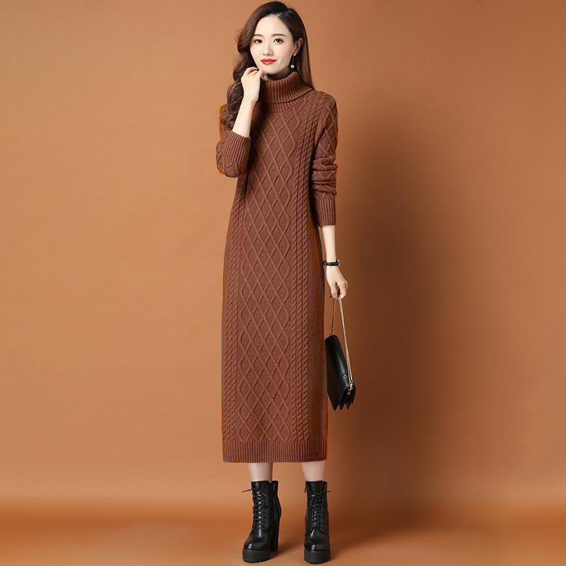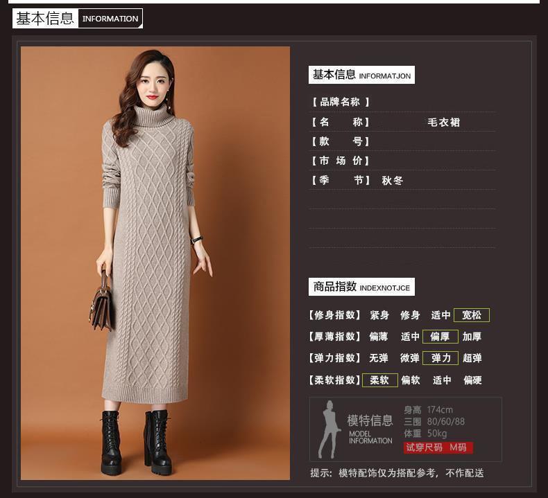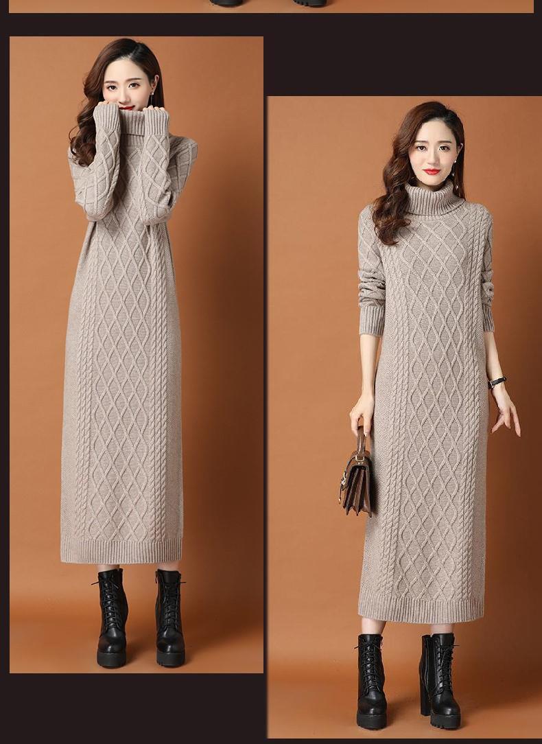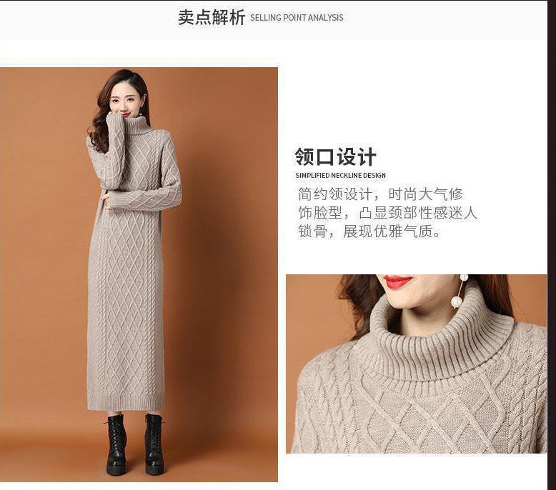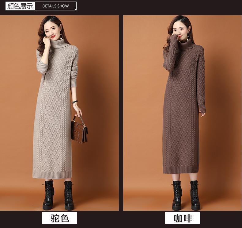 长款毛衣裙过膝秋冬季新款高领大码女装配大衣针织连衣裙气质
