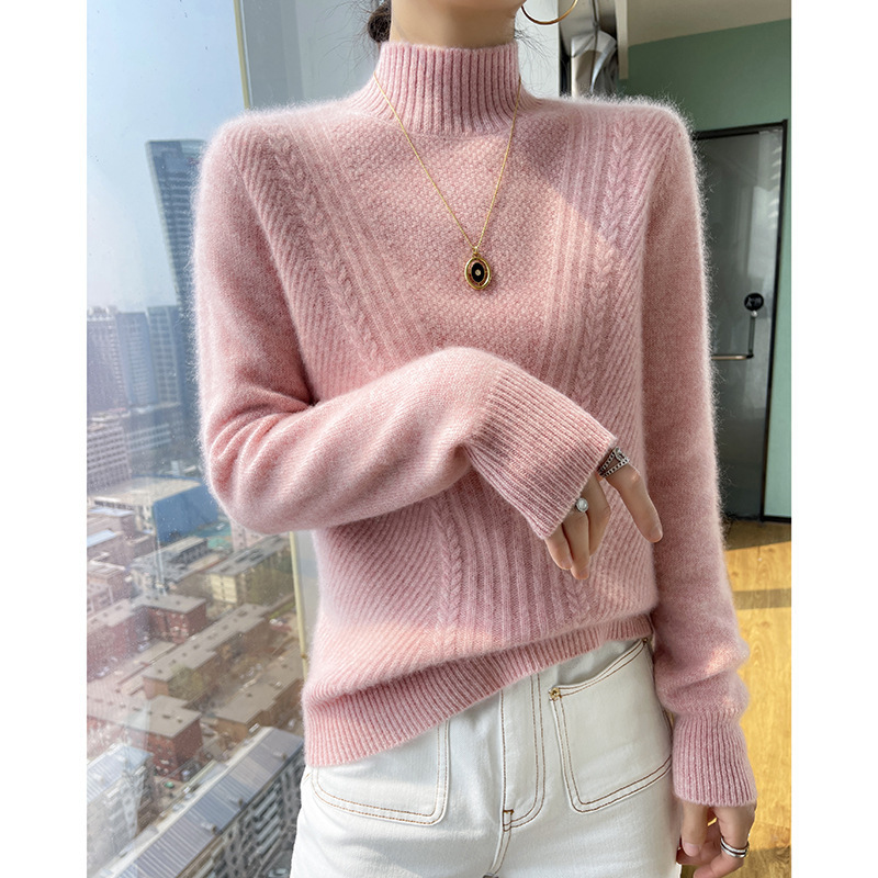 2025秋冬 レディースニットセーター ハーフタートルネックセーター 厚手ツイスト編みインナーセーター レディーストップス 卸売