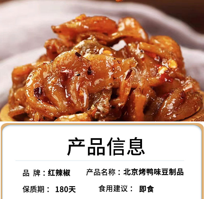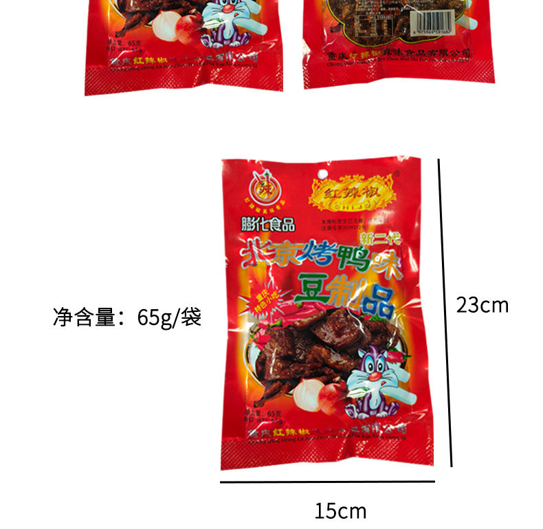 赤唐辛子北京ダック味豆製品65g重慶特色小食素北京ダック辛い間食卸売り