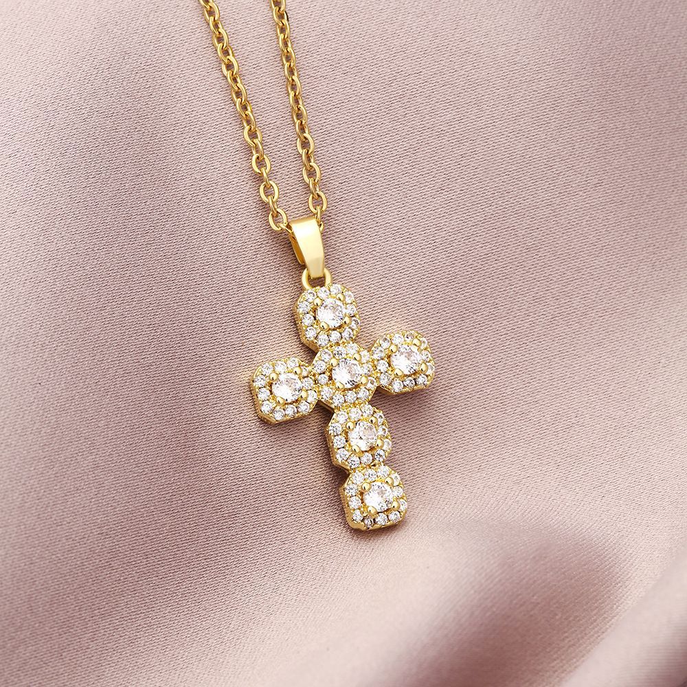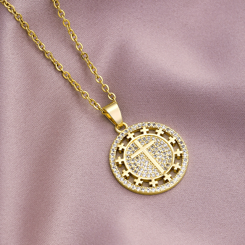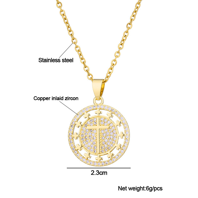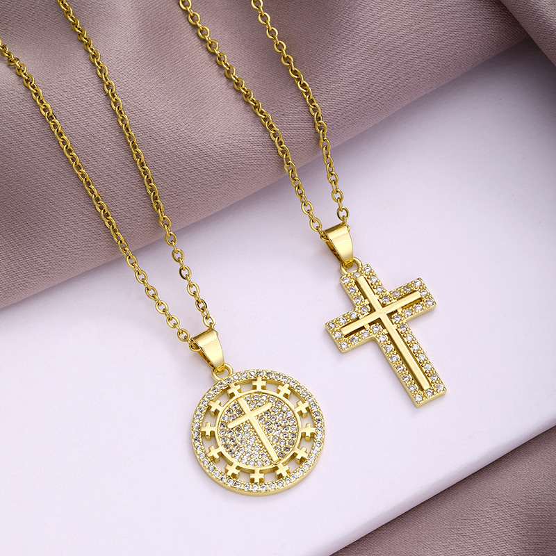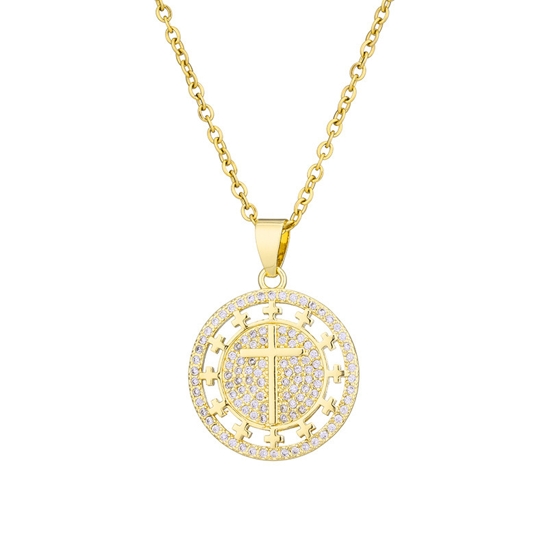 欧米のクロスボーダー銅ジルコンメッキ真金ヒップホップクロスのネックレス
