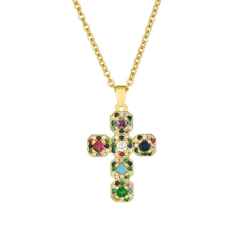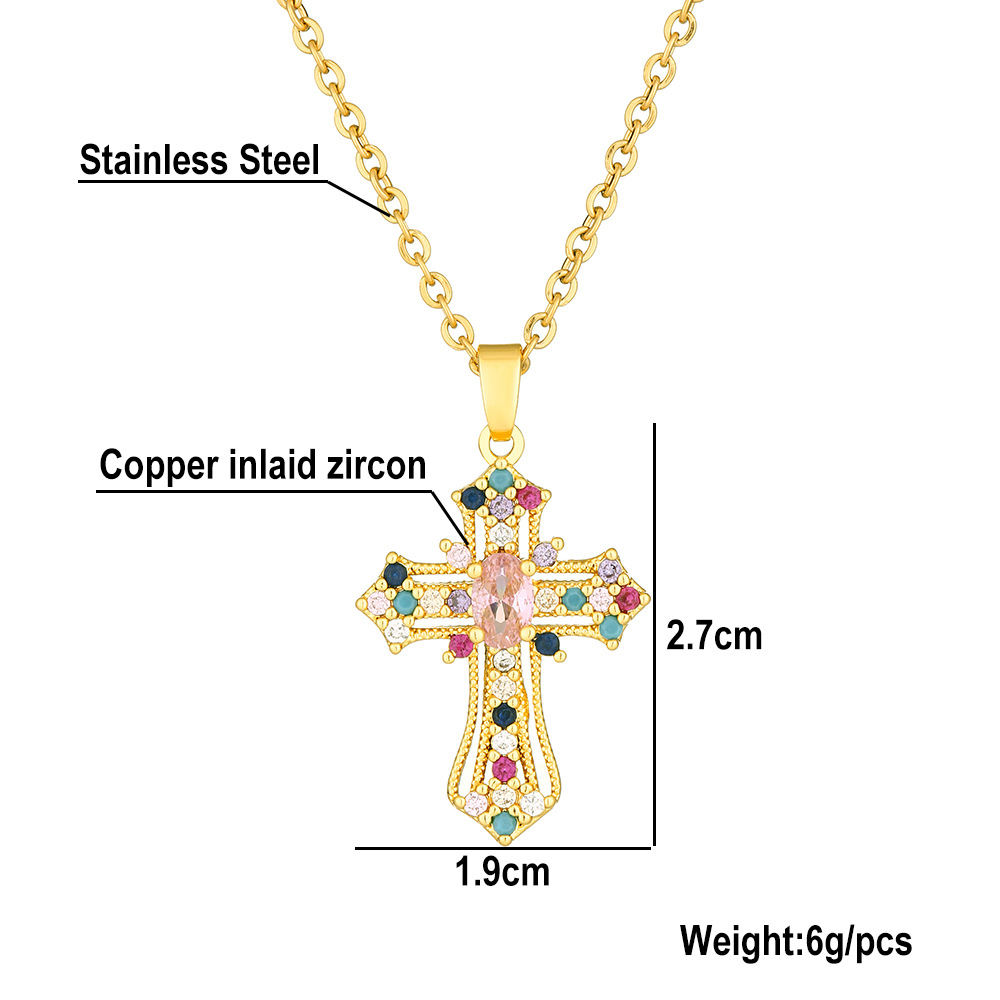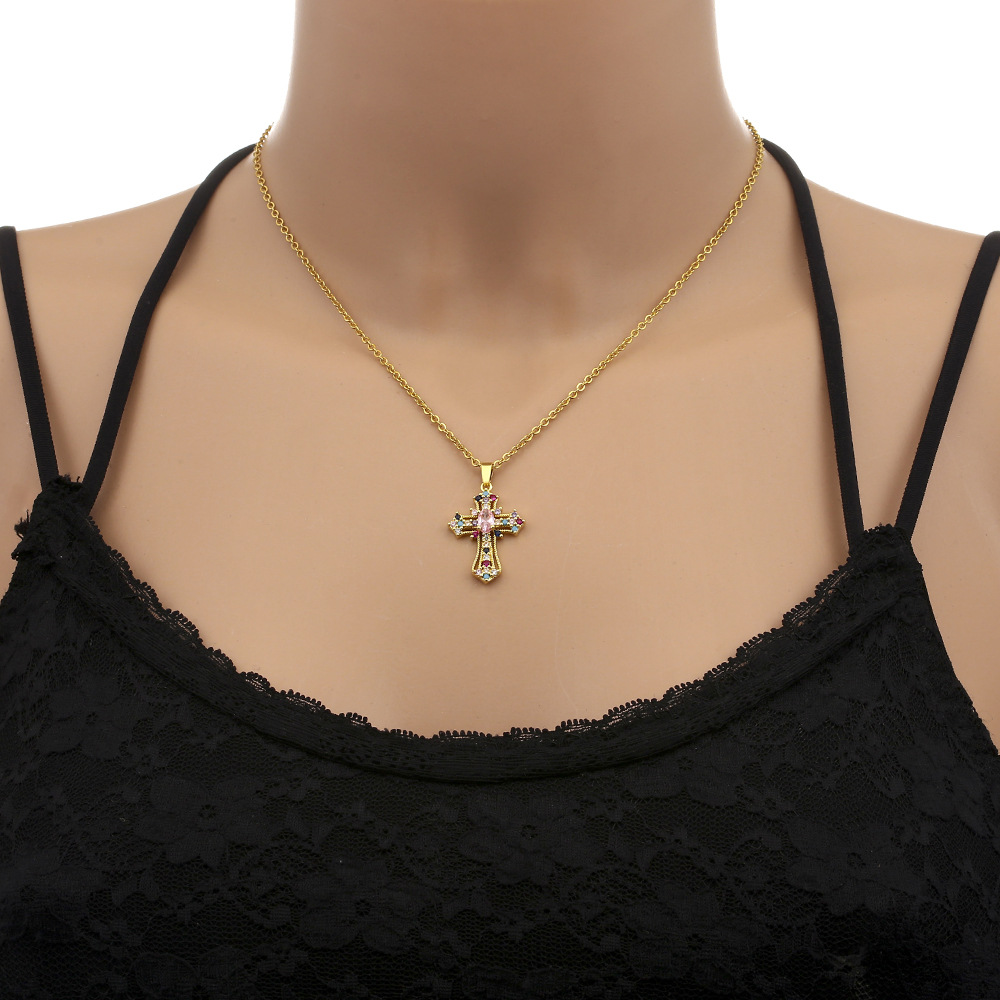 国境を越えて人気のあるカラージルコン十字架ネックレス女性欧米の個性ファッションは高級感ペンダント鎖