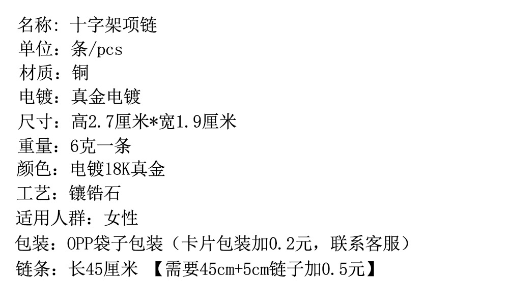 热销爆款铜镀真金时尚百搭十字架轻奢气质网红款吊坠锁骨链项链