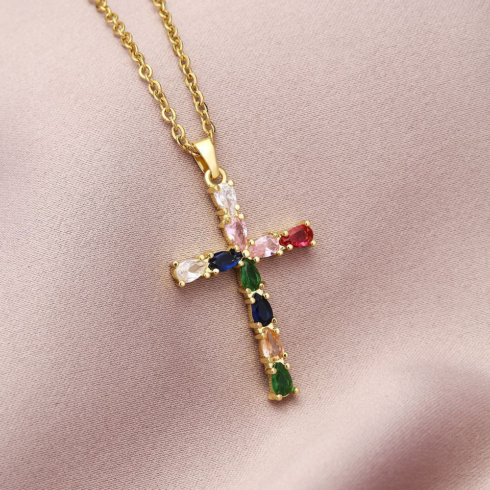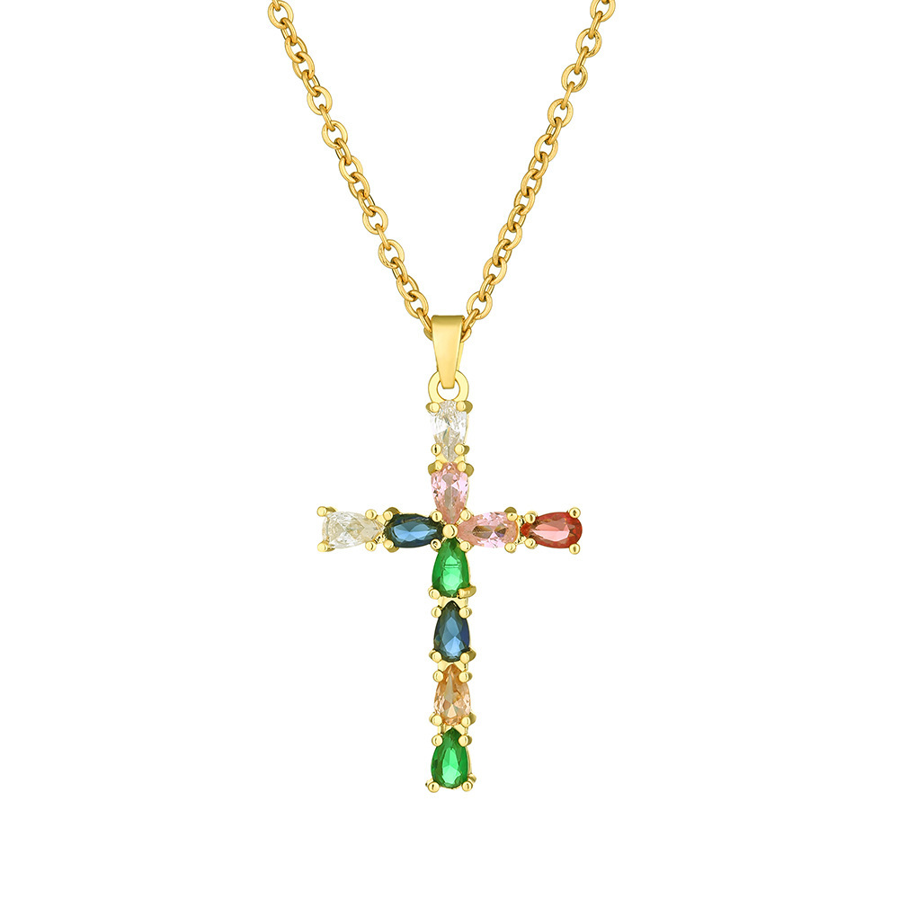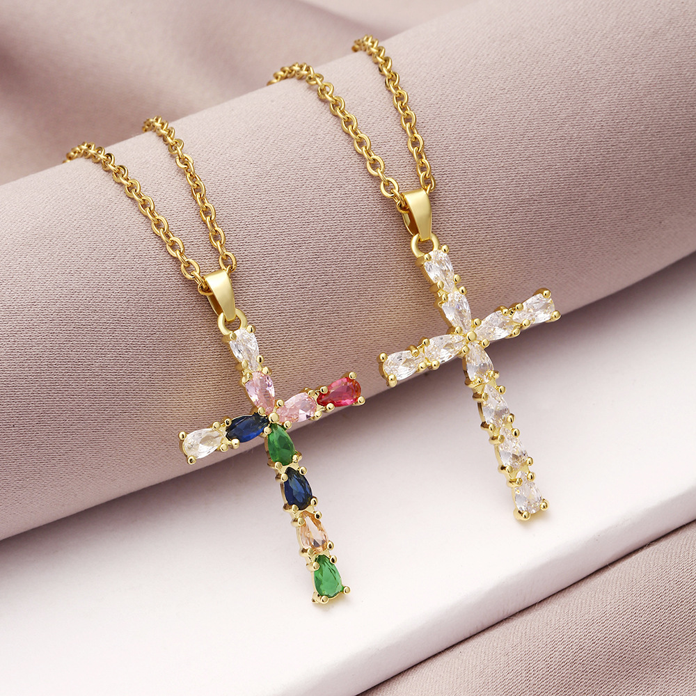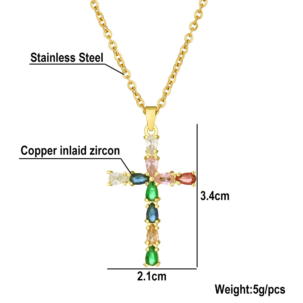 ネックレス女性のカラフルなジルコンジュエリーニッチデザインフルダイヤモンドクロスペンダントネックレスネックレスステンレス鋼鎖骨チェーン