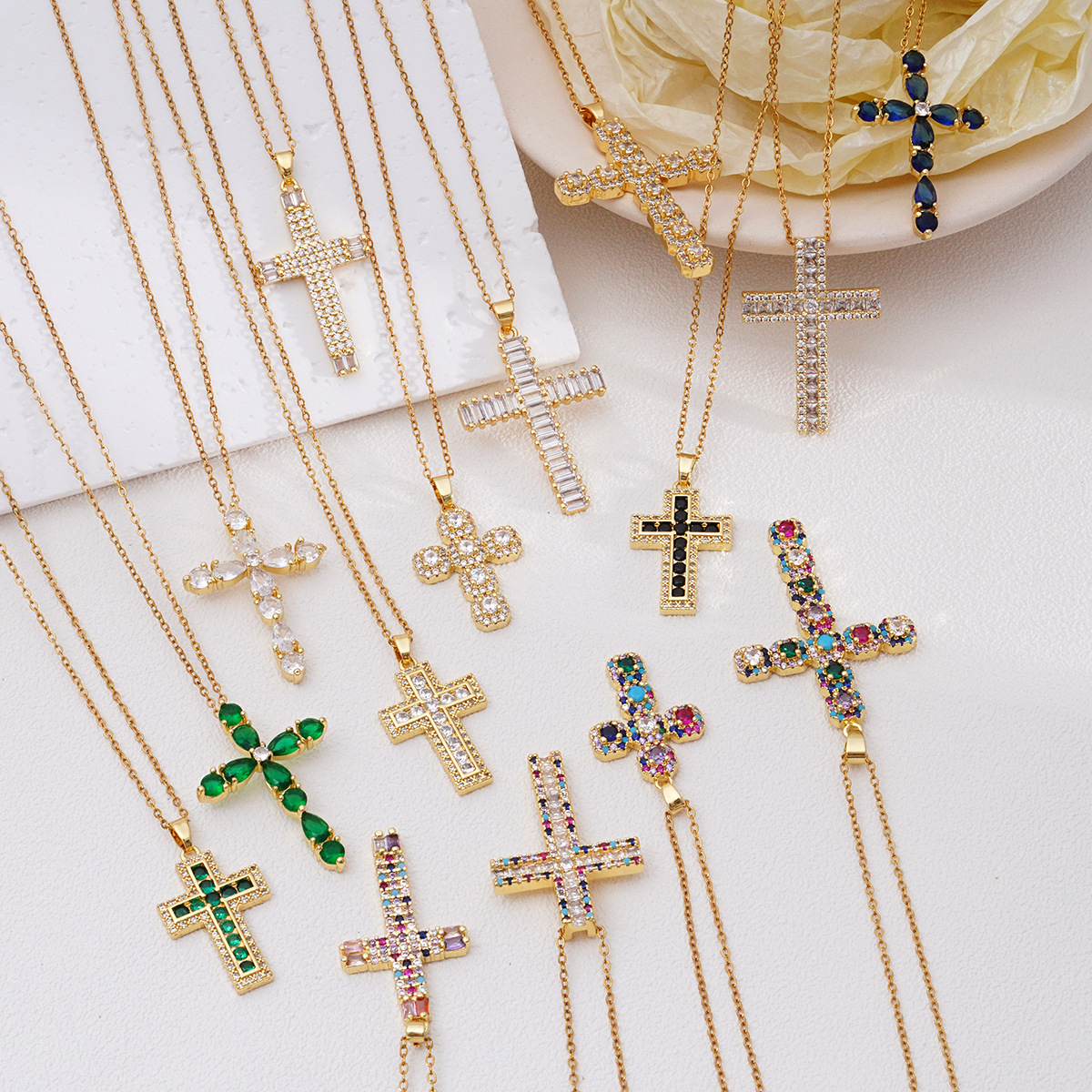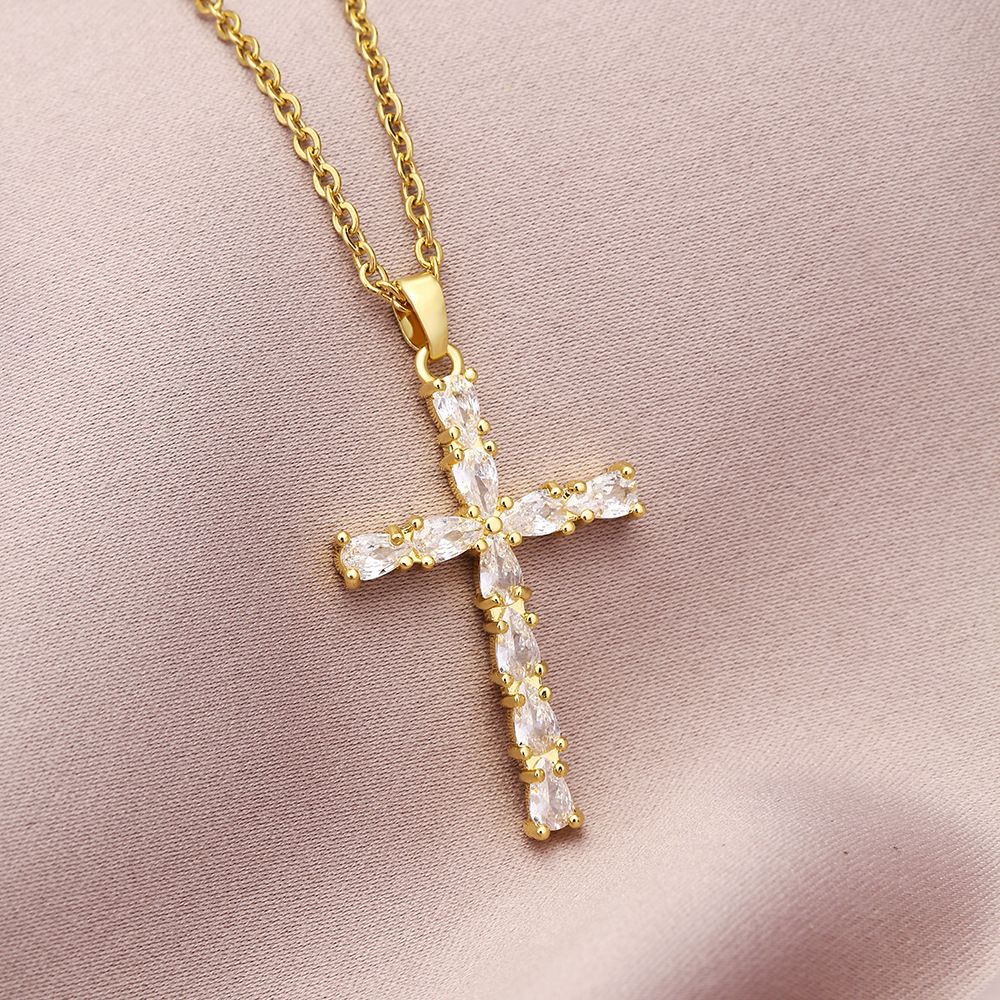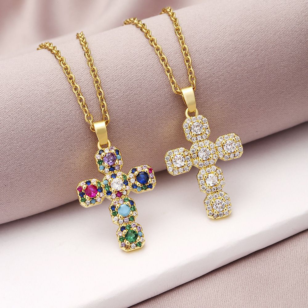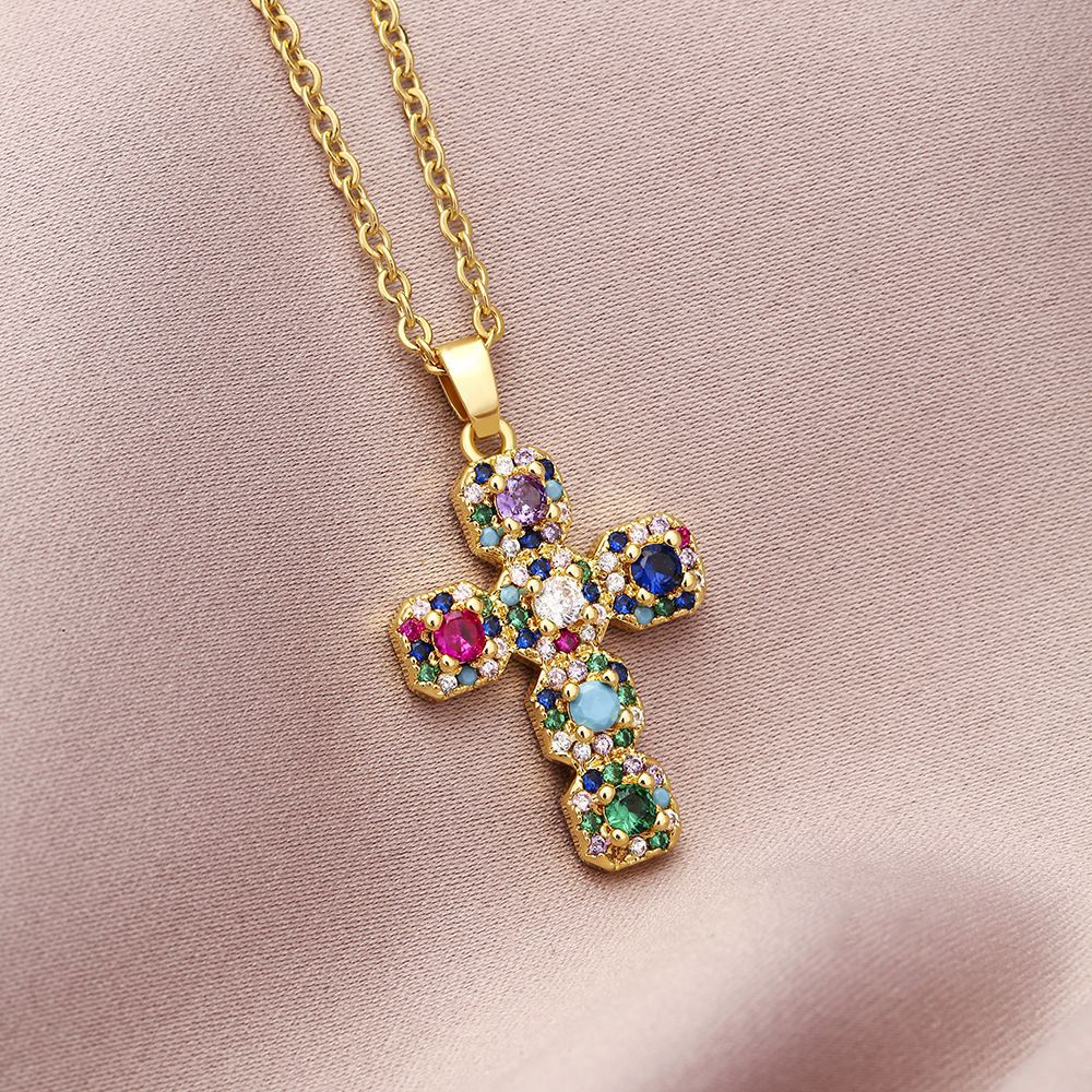 ネックレス女性のカラフルなジルコンジュエリーニッチデザインフルダイヤモンドクロスペンダントネックレスネックレスステンレス鋼鎖骨チェーン