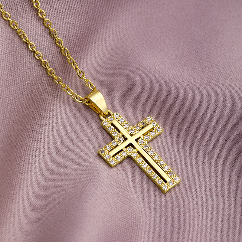 国境を越えたレトロなパンククロスネックレス個性ジルコンクロスペンダント欧米の小衆チタン鋼鎖骨ネックレス