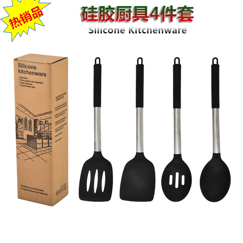 跨境硅胶厨具4件套锅铲硅胶厨具套装不粘锅铲勺套装硅胶厨具批发