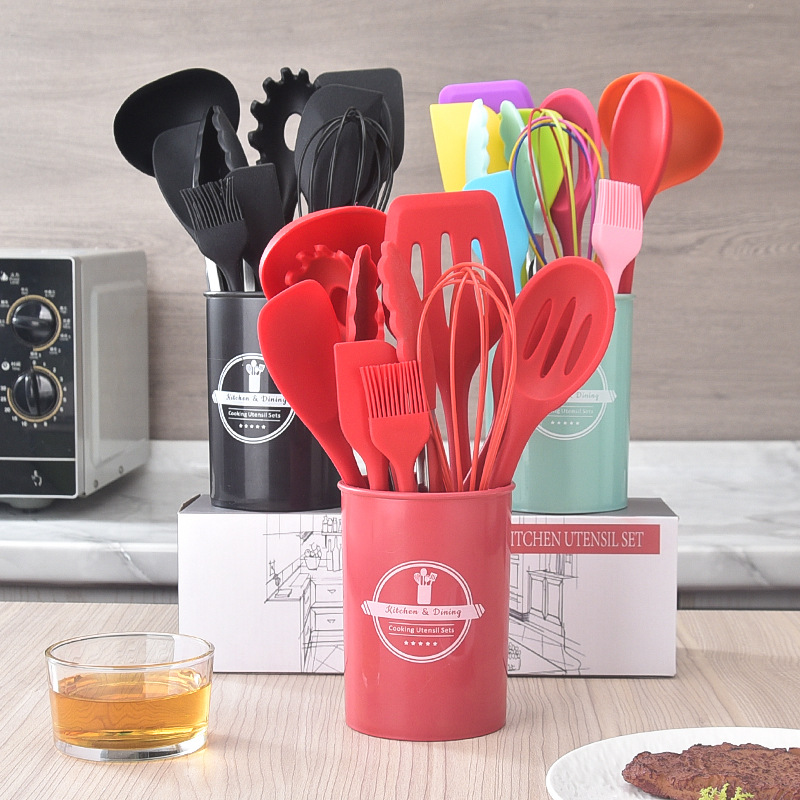 硅胶厨具11件套带桶汤勺厨具套装锅铲烘焙用具一体式不沾锅套裝