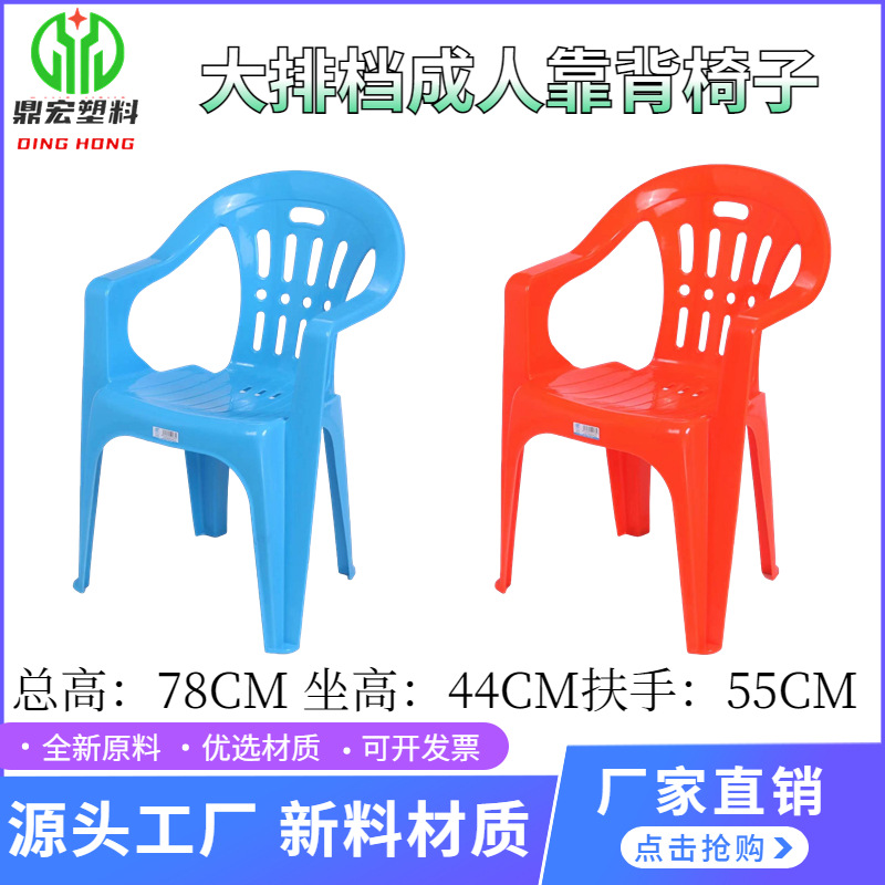 大人用のプラスチック椅子を厚くして、屋外でプラスチックスツールを演出します。
