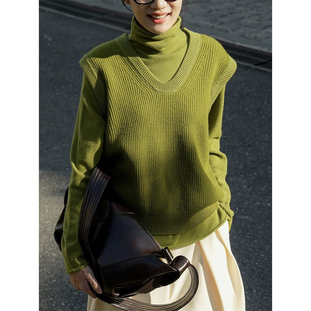 ルフ冬の新作韓国風シンプルウールVネックベスト快適でおしゃれな重ね着ニットベスト女性用