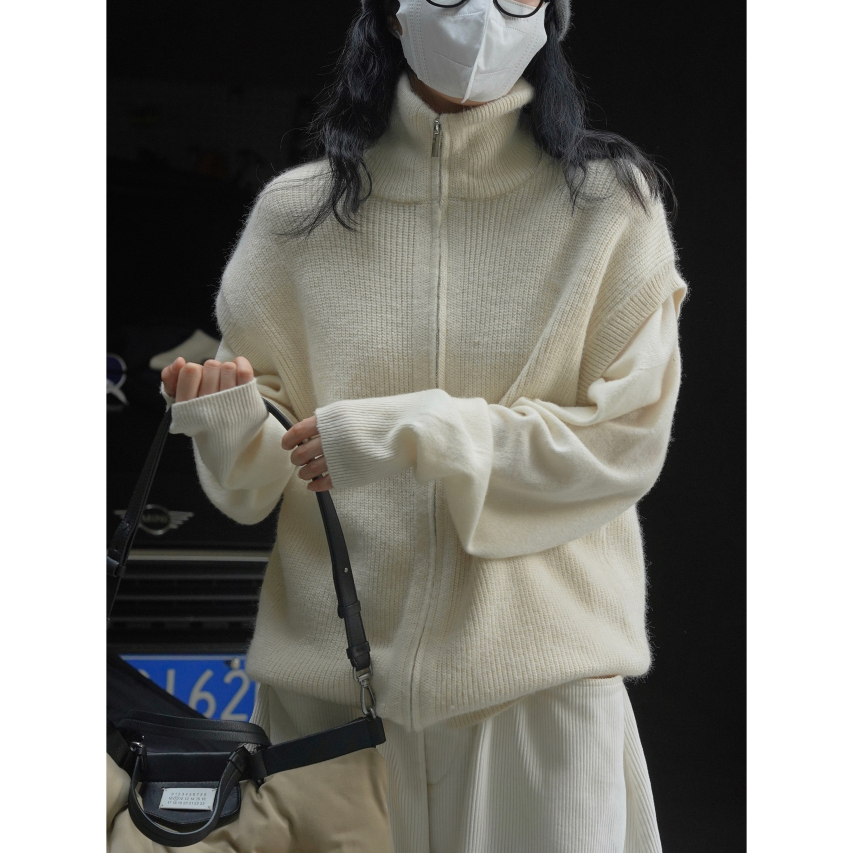 秋の新型日本のロックウールの小さい立襟の馬甲はゆったりとしていて、やせていて軽いです。