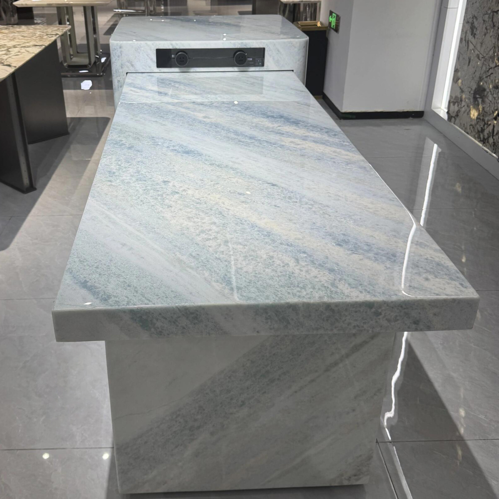 蓝水晶大理石厨房台面餐桌岛台 入户玄关奢石背景墙