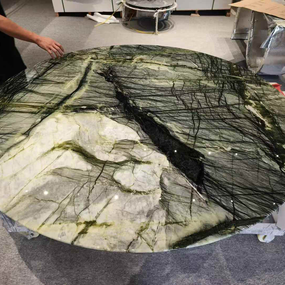 マルス緑の豪華な石のテーブルの面のお茶のいくつかの円形の大理石の食器棚の面の軽い豪華な石材の装飾