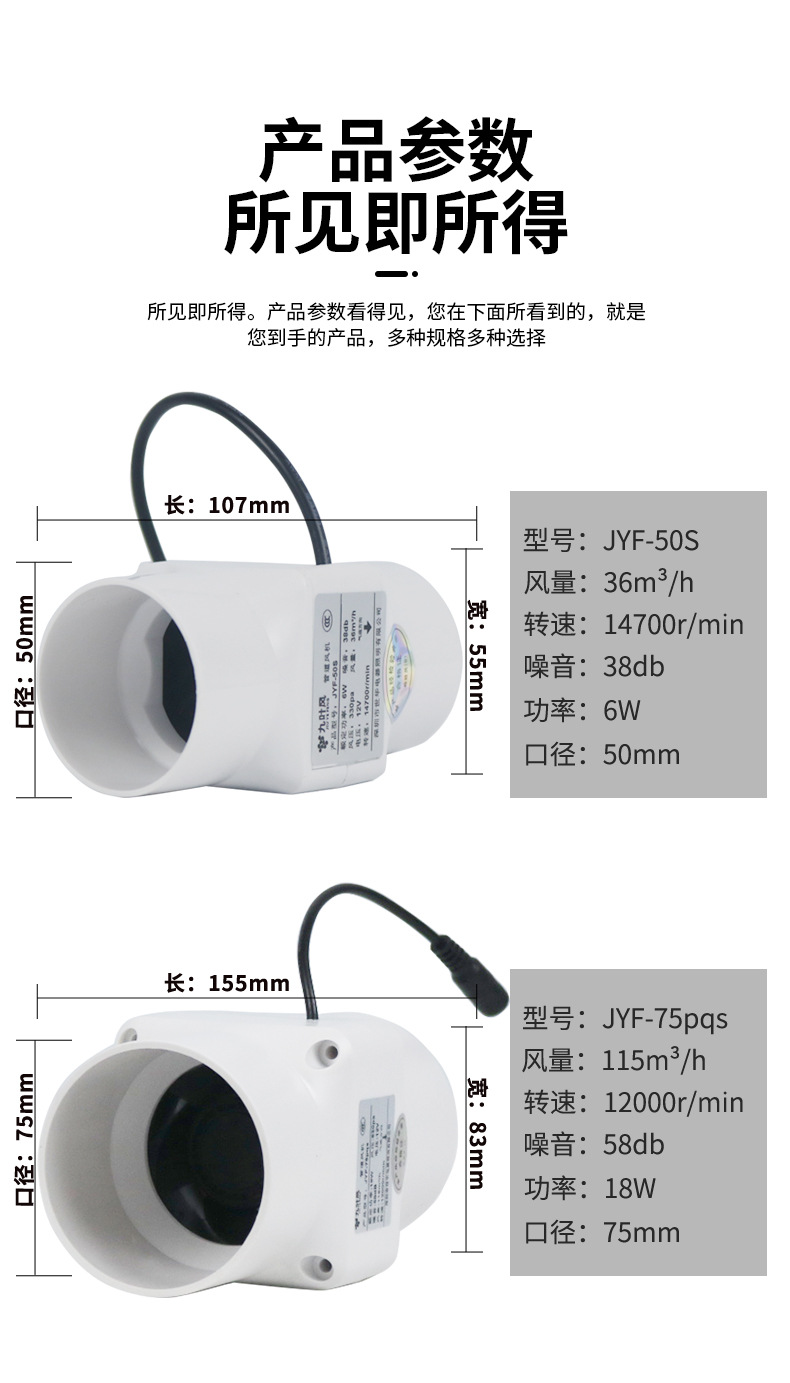 2inch/50口径-6ワット(12v電源) 風量36,2inch/50 口径 - 6 ワット (シングルスピード) 風量 36,2inch/50口径-6ワット(速度調整)風量36,2inch/50 口径 - 12 ワット (12V 電源) 風量,2inch / 50口径 - 18ワット(シングルスピード)風量54,2inch・50口径-18ワット(速度調整)風量54,2.5inch/60口径-14ワット(12v電源) 風量90,2.5inch/60 口径 - 14 ワット (シングルスピード) 風量 90,2.5inch/60口径-14ワット(速度調整) 風量90,3inch/75口径-6ワット(12v電源) 風量80,3inch/75 口径 - 6 ワット (シングルスピード) 風量 80,3inch/75口径-6ワット(速度調整) 風量80,3inch / 75口径 - 14ワット(12V電源)風量115,3inch / 75口径 - 14ワット(シングルスピード)風量115,3inch/75口径-18ワット(速度調整) 風量115,3 インチ 75 口径 - 16 ワット (直接プラグイン) 風量 186,3inch / 75口径 - 30ワット(ダイレクトプラグイン)風量222,3inch / 75口径 - 36ワット(ダイレクトプラグイン) 風量222,4inch/110口径-13ワット(ダイレクトプラグイン/静音モデル)風量108,4inch/110口径-13ワット(ダイレクトプラグイン)風量186,4inch/110口径-18ワット(ダイレクトプラグイン) 風量218,6inch/160 口径-16 ワット (ダイレクトプラグイン) 風量 485,6inch / 160口径 - 35ワット(ダイレクトプラグイン)風量600,6inch/160口径-80ワット(ダイレクトプラグイン)風量700,8inch/200口径-110ワット(ダイレクトプラグイン)風量1292