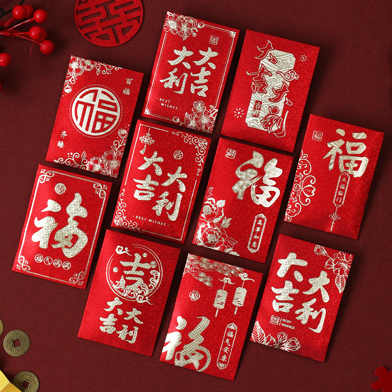 2025年馬年赤い封筒千元つや消しホットスタンピング幸運春祭りラッキーパックハッピーワード付き結婚式の赤い封筒