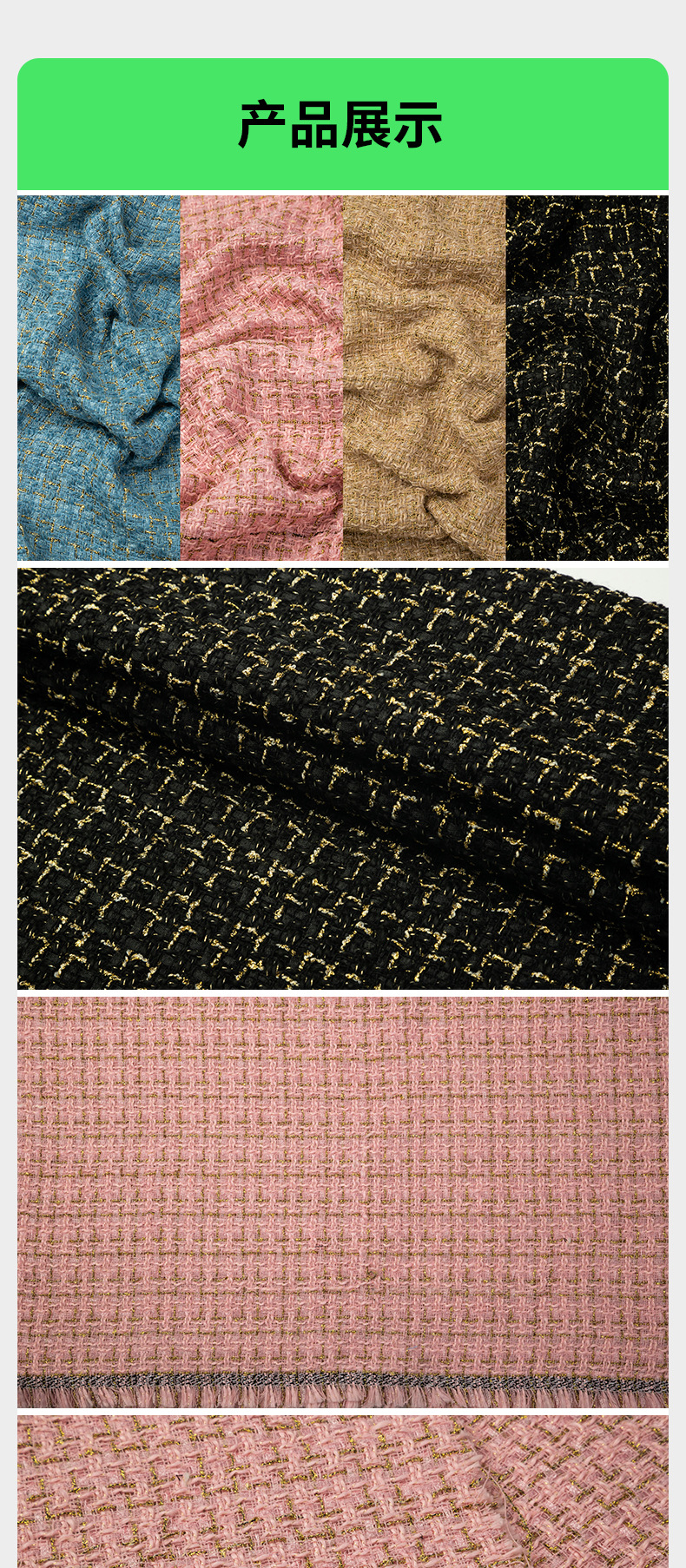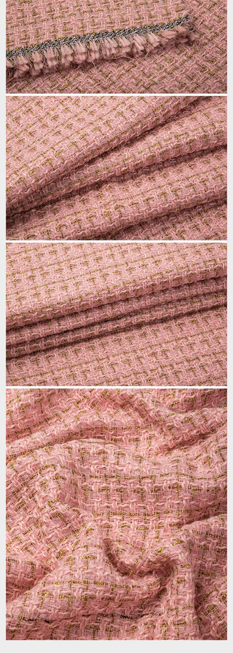 現物メリヤス金糸粗紡織小香風生地両面ジャカードコート毛生地卸売り