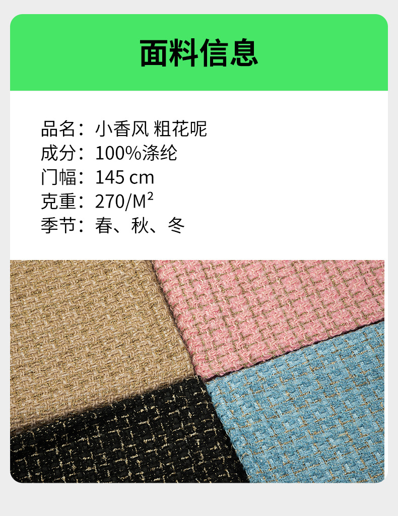 メーカー直供粗紡小香風粗花生地粗紡毛コート靴帽バッグズボンスカート玩具生地