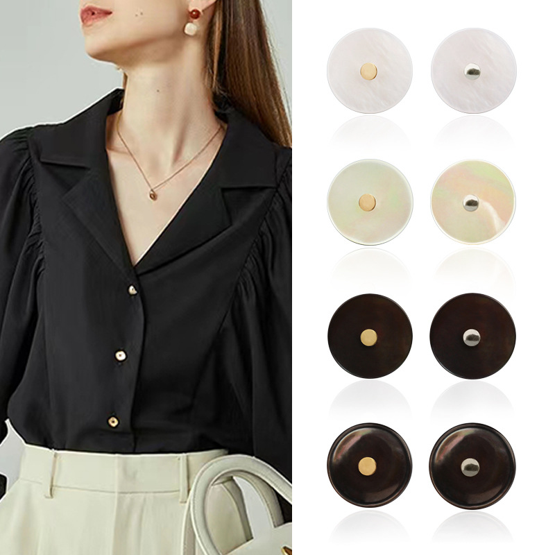天然米白色黒色ベージュ色シルクシャツ貝殻ボタンスーツコート風衣貝殻ボタン