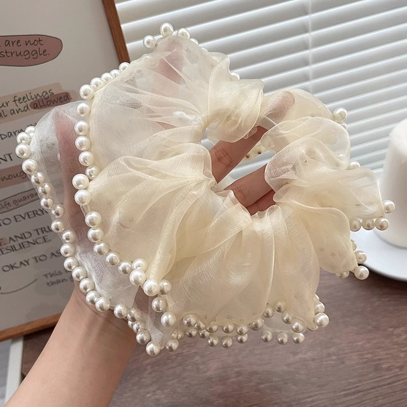 気質を掴むメッシュパールヘアゴム、女性用ヘアゴム、ゴムバンド、ボールヘッド、高弾性ヘアスタイラー