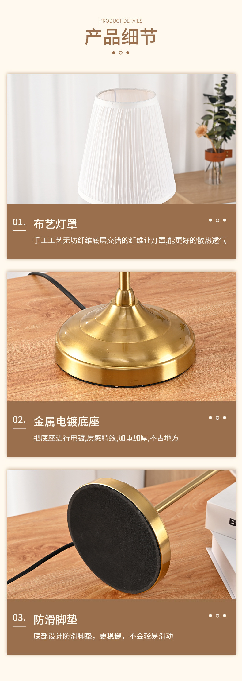 国际跨境法式布艺金属台灯复古创意餐厅创意夜灯led充电批发led灯