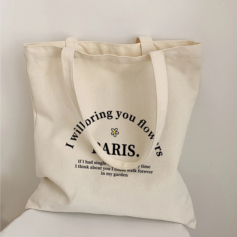 韓国版小清新parisアルファベットキャンバスバッグ大容量カジュアル手提げ袋文芸ショッピングバッグ森系ins風