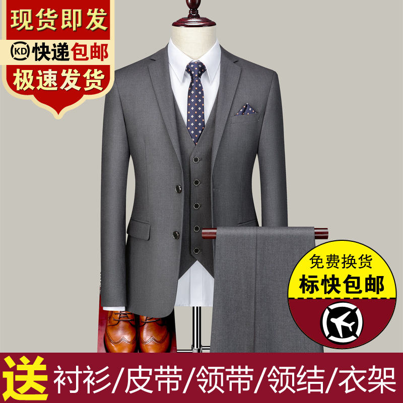 スーツのスーツの男性の3つのセットの付き添いの服の韓国版の修身の正装の職業の服の新郎の結婚するドレスの男性のスーツ