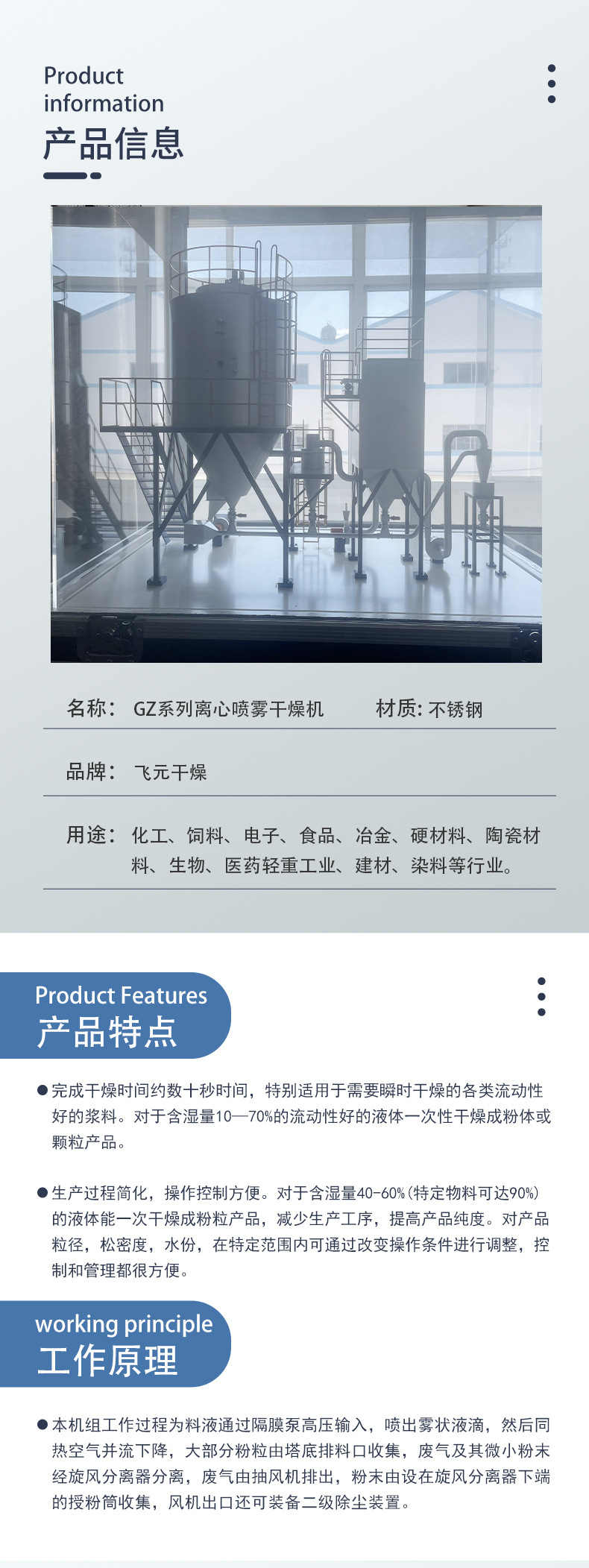 GZシリーズスプレー乾燥機遠心霧乾燥機スプレー乾燥設備化学工業ステンレス粉末乾燥機