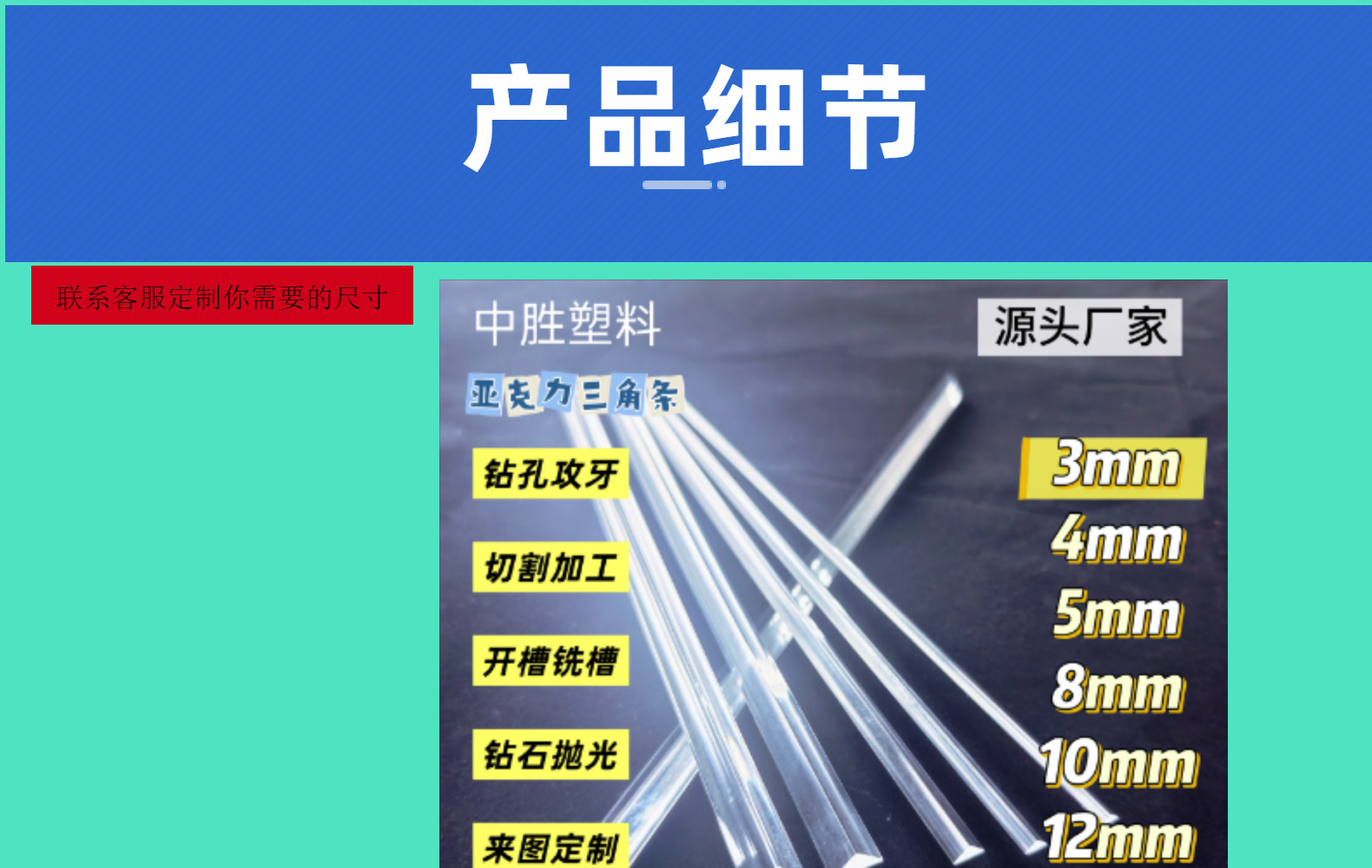 (月ピン2000) アクリル三角バー10-40mm三角バー有機ガラス三角バー補強バー工場