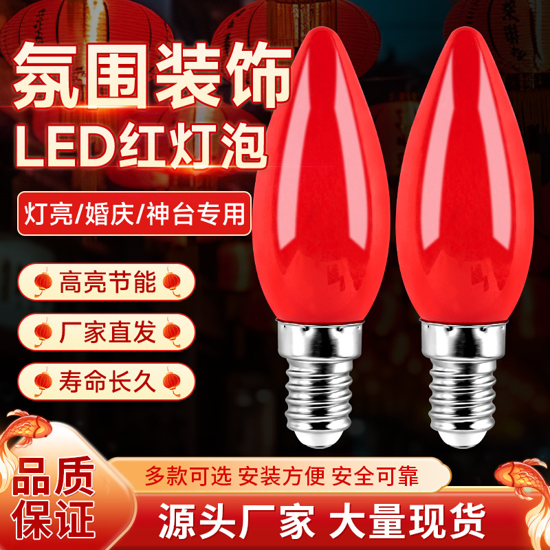 Led神台電球e14赤いろうそく神仏灯財神灯尖泡仏珠装飾灯