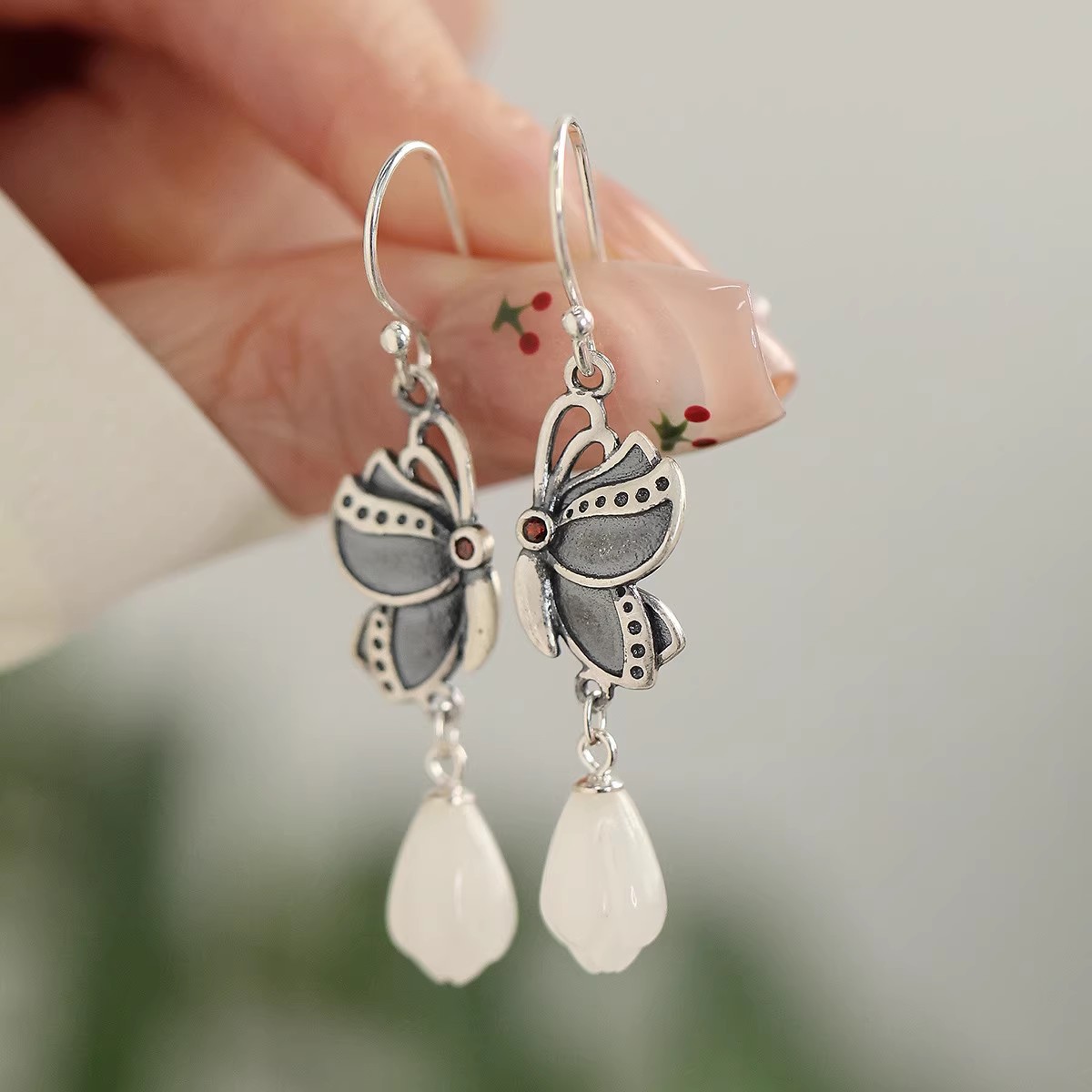 925银蝴蝶耳钩耳环女和田国风高级感轻奢复古民族风耳饰显脸瘦