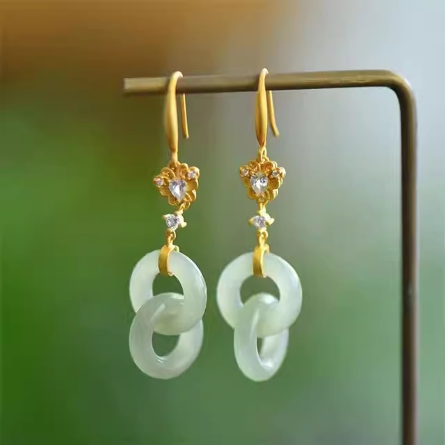 s925シルバー金メッキ新疆和田白玉玉蘭花リンランイヤリングファッション気質女性用シルバーイヤリング