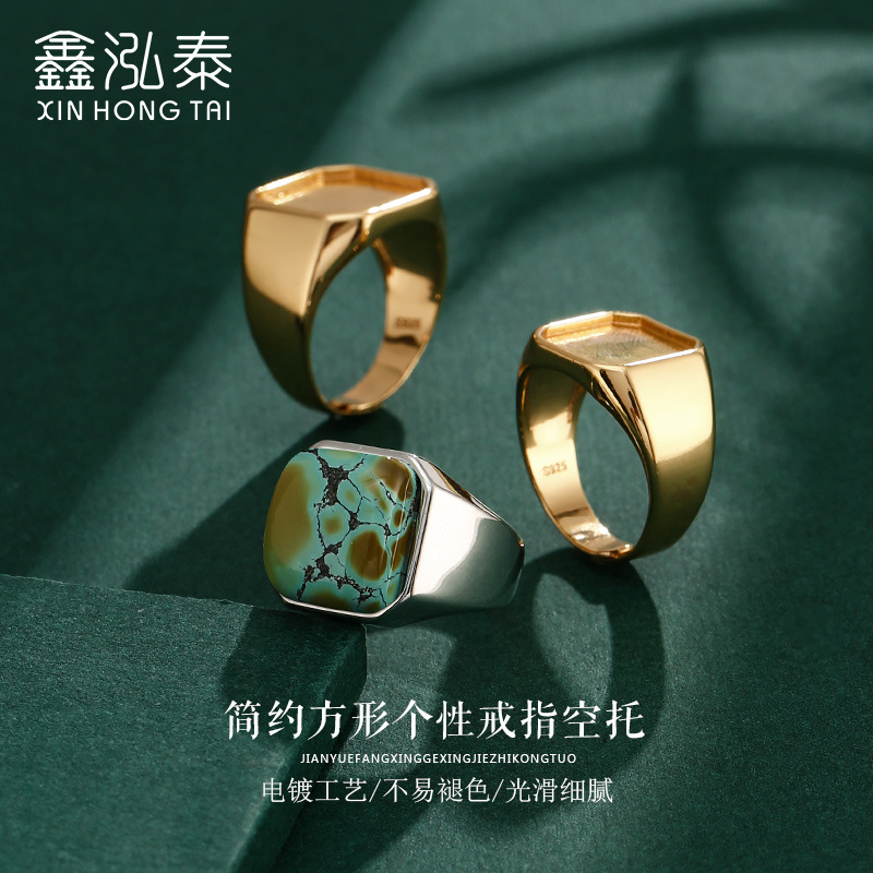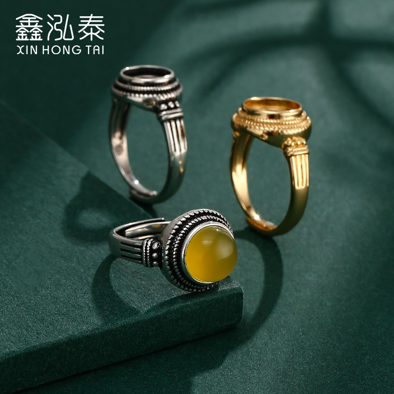 民族風古法金戒托空托18k金工芸指輪空売りdiy蜜蝋琥珀緑松石戒指托