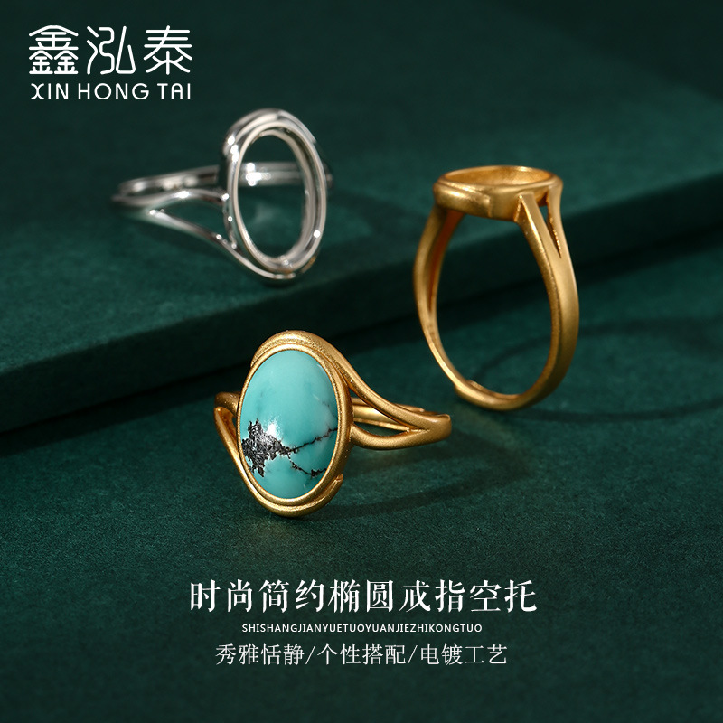 古法沙金工芸指輪空托女モザイク蜜ろう琥珀玉戒托空托シンプル楕円形空托