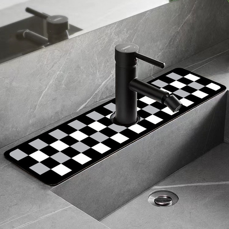 格子キッチン蛇口吸水マットテーブル防水防かび水切りマット洗面台速乾クッション