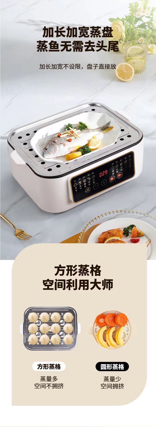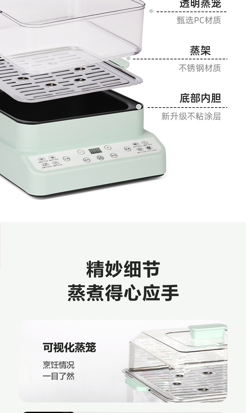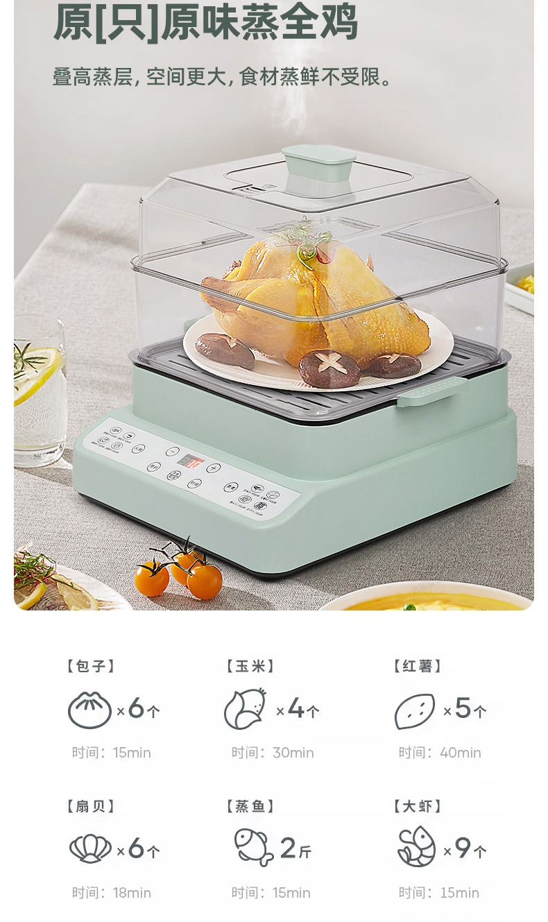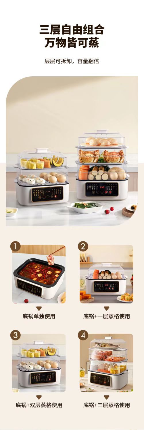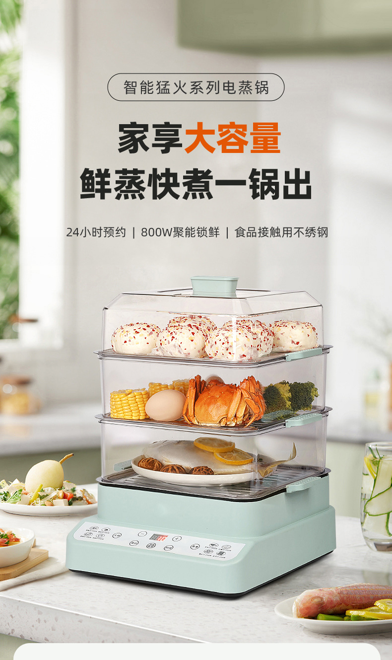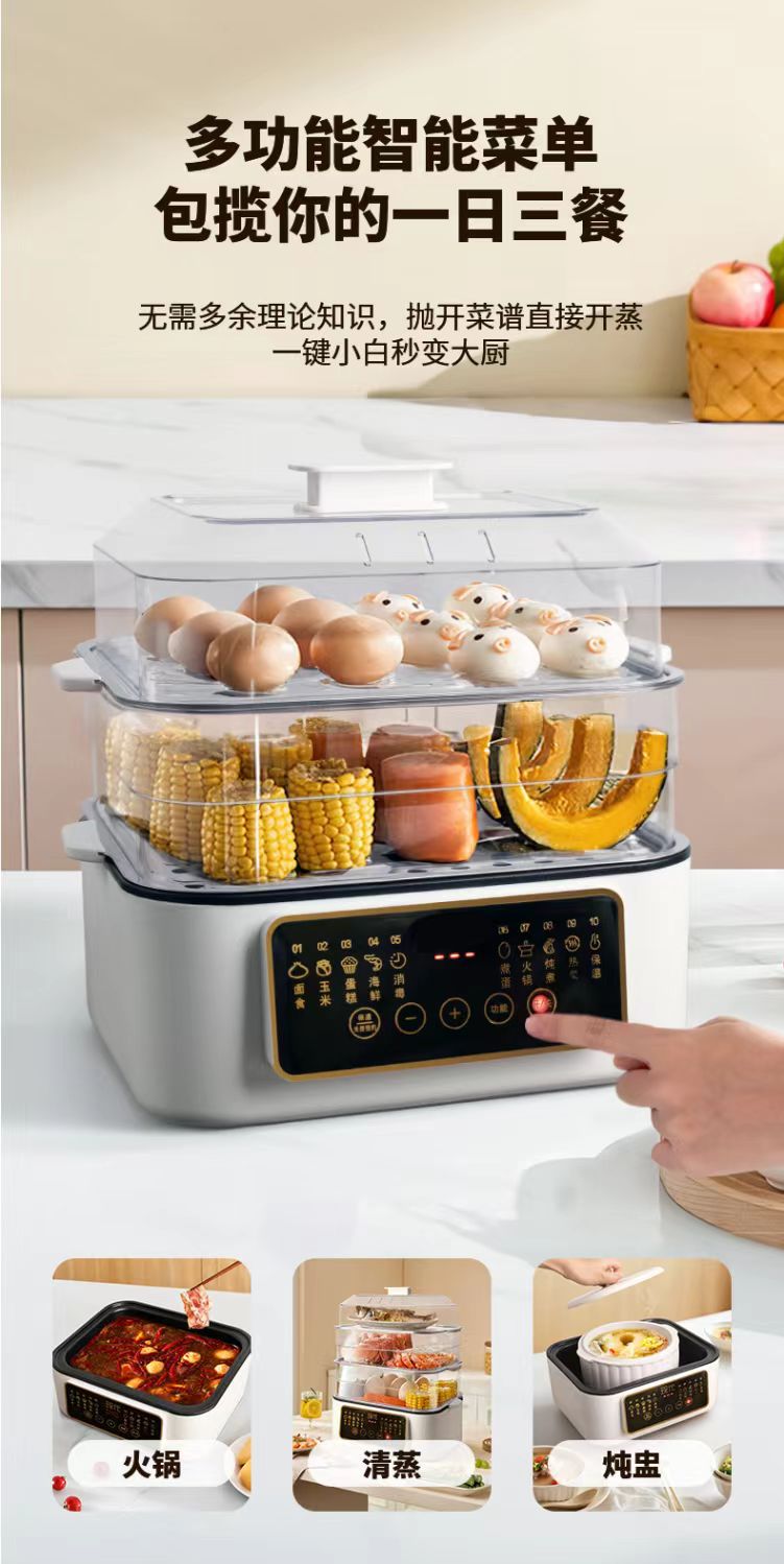 新款电蒸锅家用三层大容量多功能预约定时蒸煮一体早餐机电火锅批