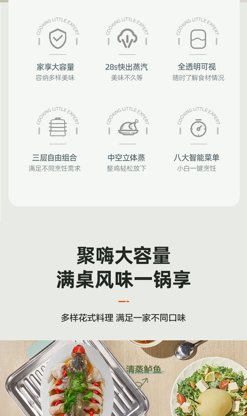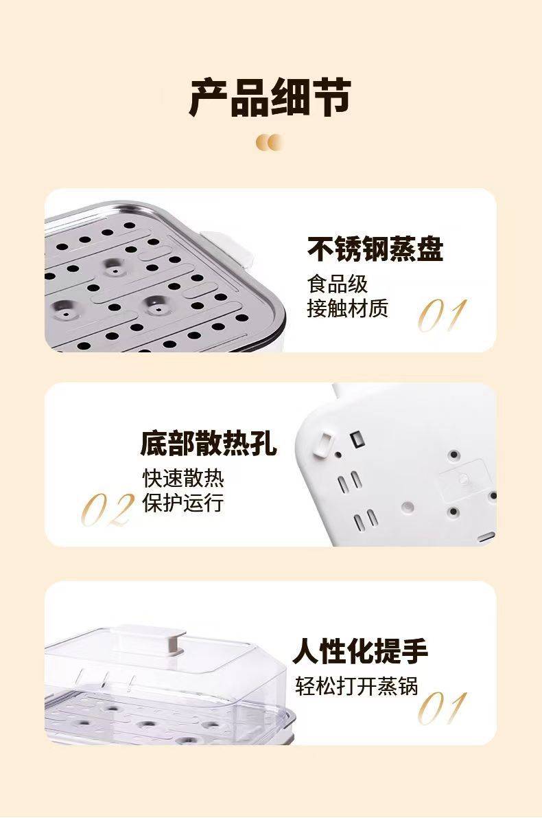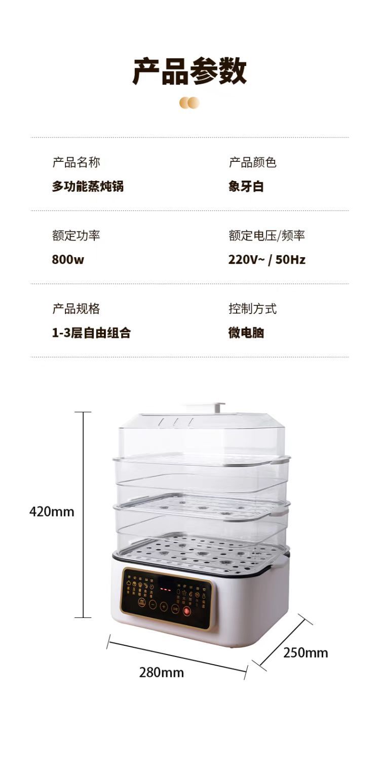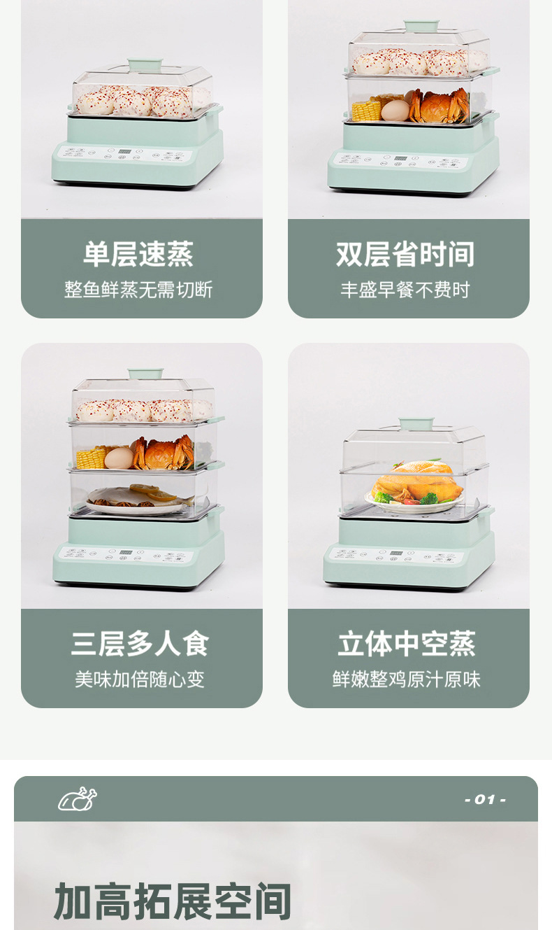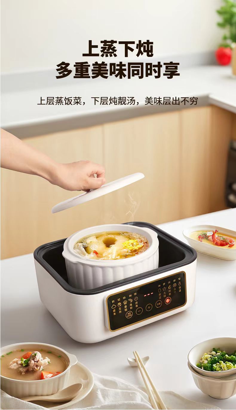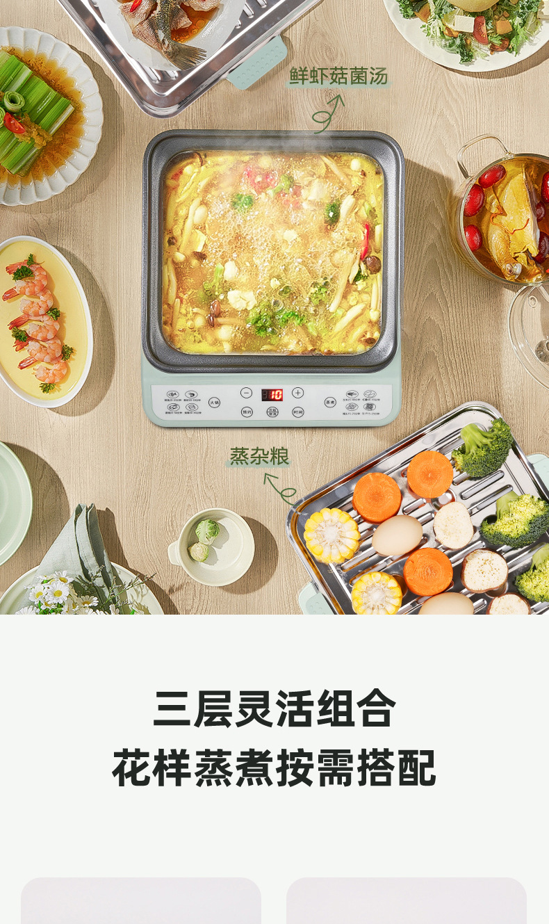 新款电蒸锅家用三层大容量多功能预约定时蒸煮一体早餐机电火锅批