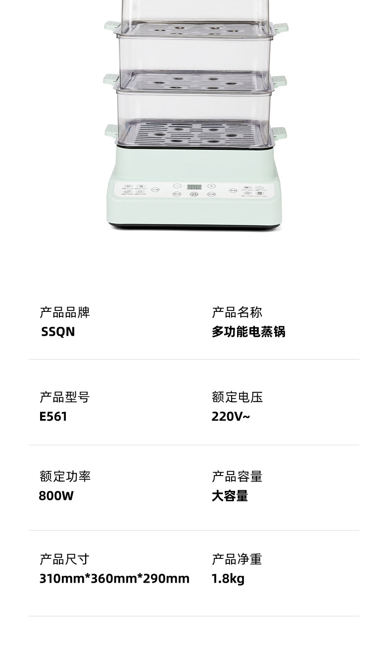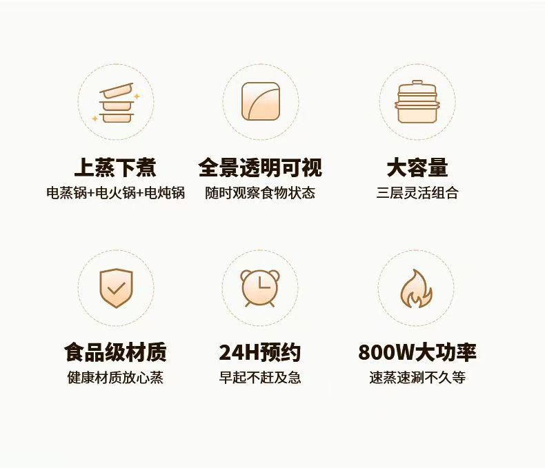 先科電気蒸し鍋電気蒸煮一体多層朝食機電気蒸し器家庭用電気鍋小型多機能予約