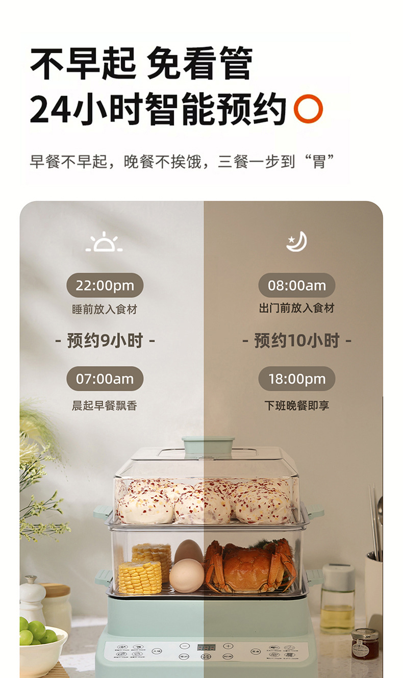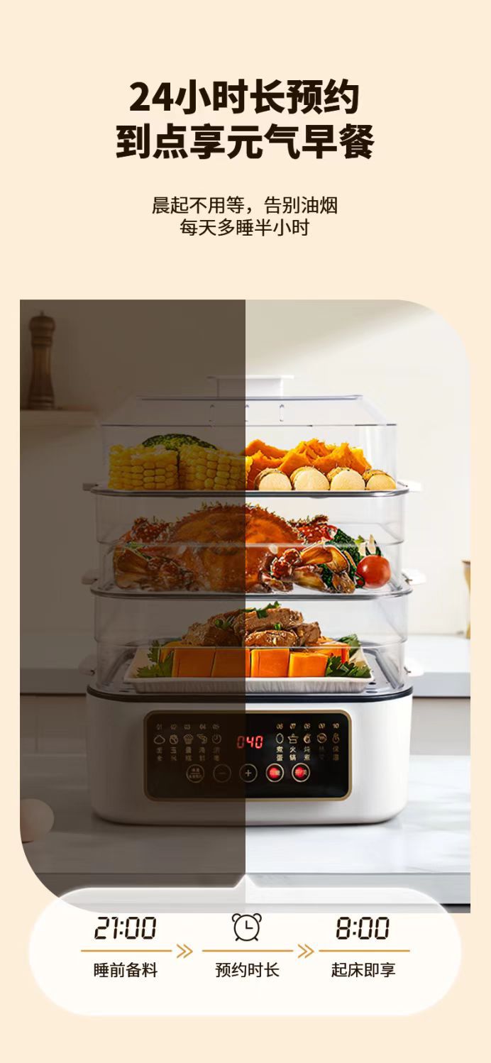 万利达2025新款多功能预约家用三层大容量电蒸锅蒸煮一体锅早餐机
