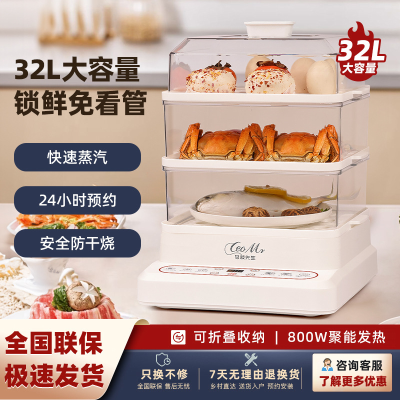 イギリスCeoMr32リットル大容量電気蒸し器透明多機能蒸し器保温電気蒸し器全自動三層