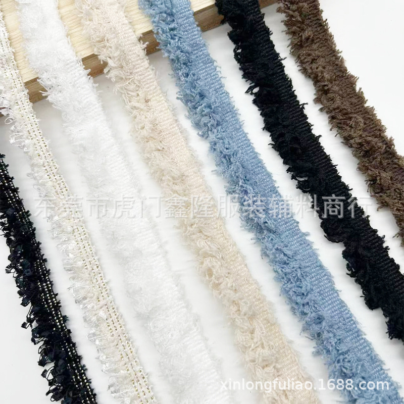 小香風綿線1.5-5cm白黒カラー一辺流蘇ひげ補助材料ダンス服装バッグひげレース