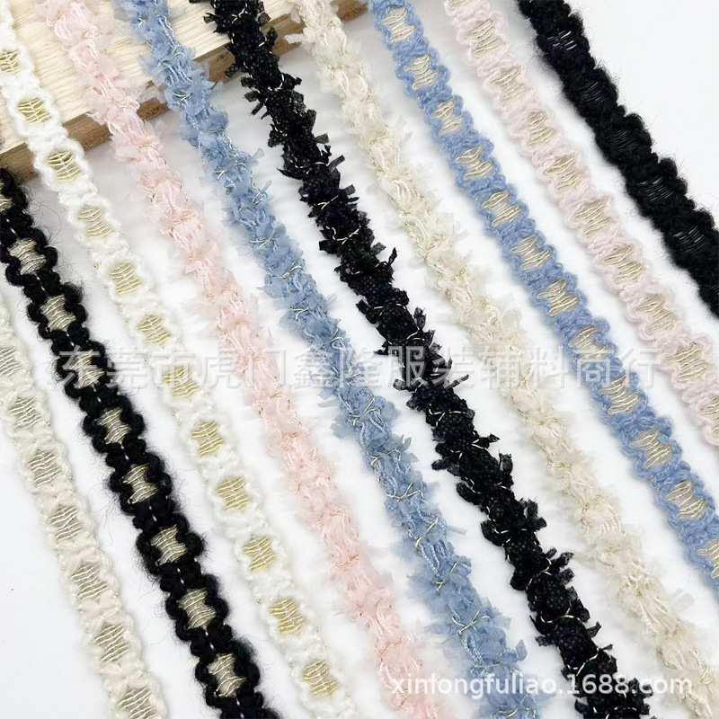 小香風0.7cmカラーラメ糸双珠リボンdiy服装襟元スカートバッグ補助材料レース